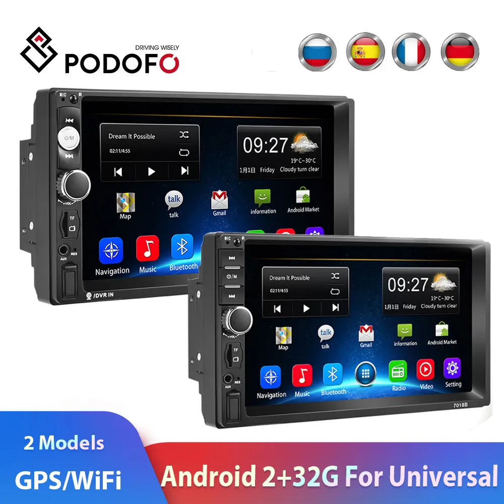 Podofo 2din Android Car Radio GPS WiFi 2DIN Car Multimedia Player autoradio For Volkswagen TOYOTA G