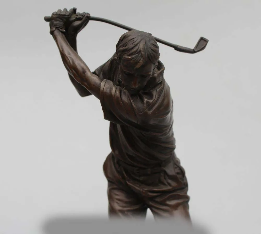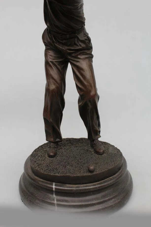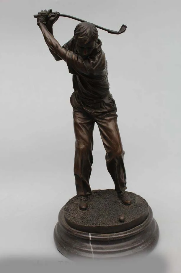REVIEW TOP SELLER 14"Western Art sculpture Bronze Marble Men Play Golf linksman sculpture Statue